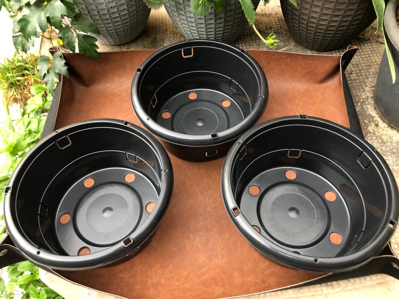 O item conta com seis saídas de água, projetadas para que as raízes não bloqueiem o escoamento da água, evitando que apodreçam, e três mini apoios para manter o vaso afastado da superfície. Além disso, conta com três engates para que o vaso seja pendurado.